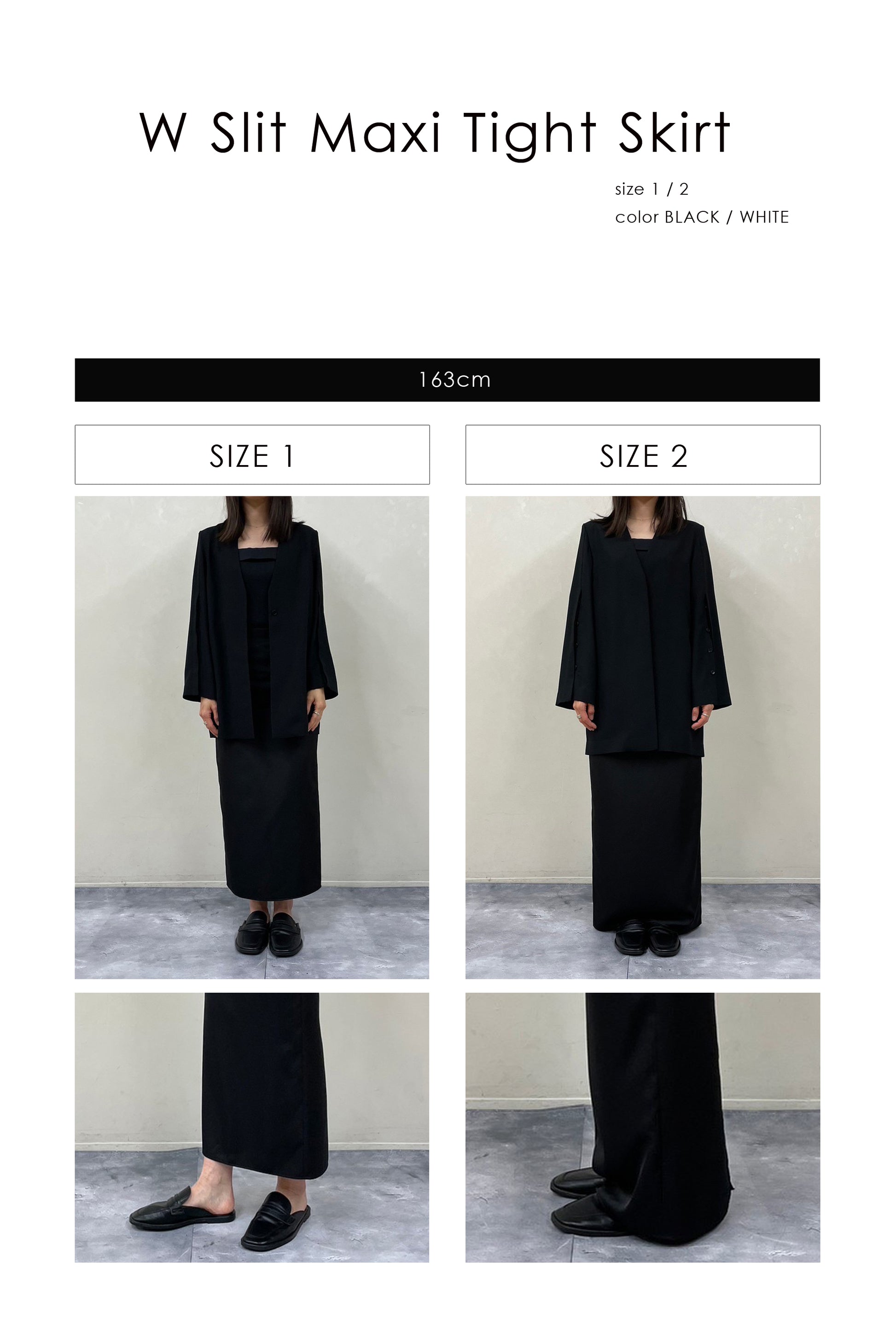 W Slit Maxi Tight Skirt-BLACK