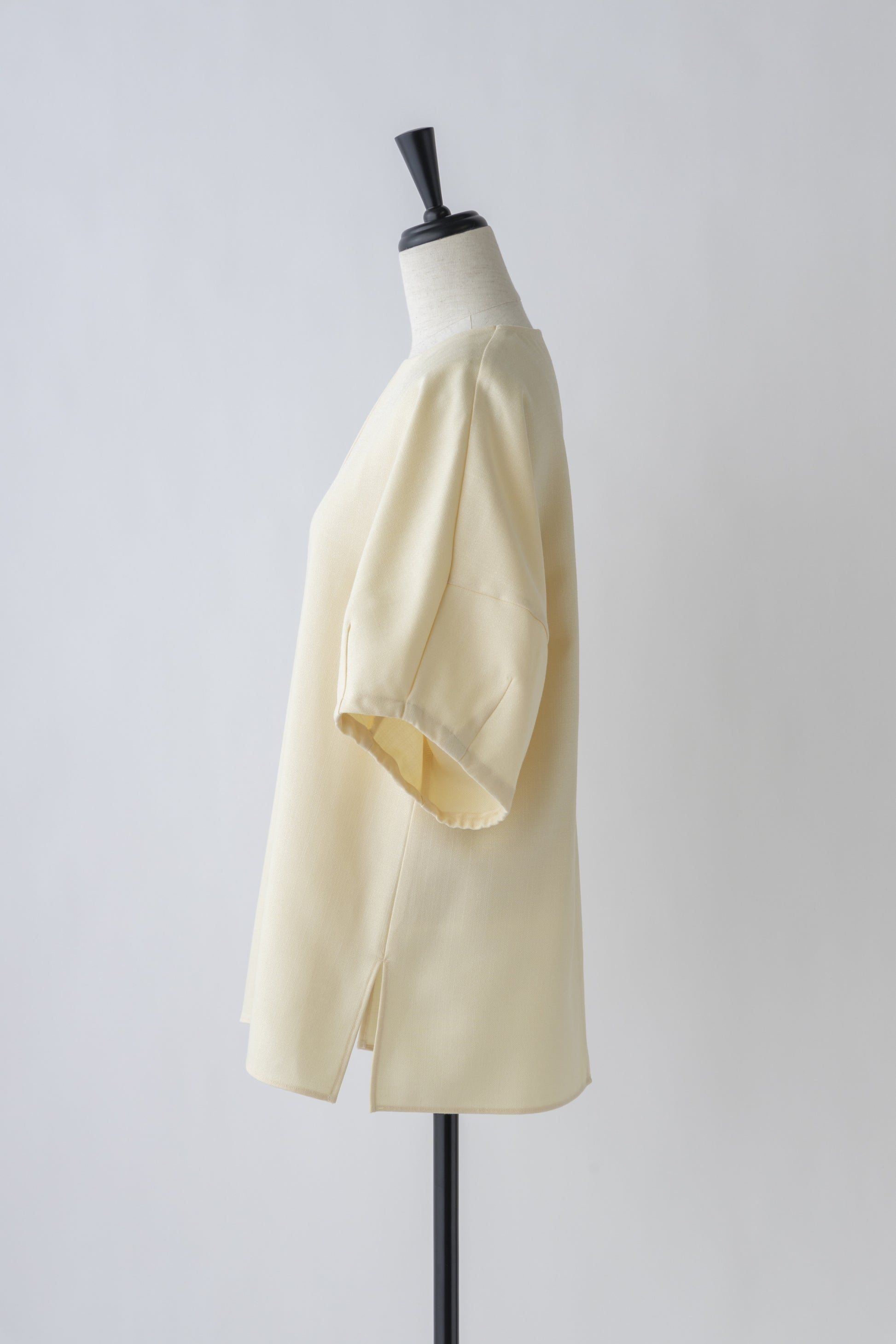 Luster keyneck shortsleeve Blouse-EGG YELLOW