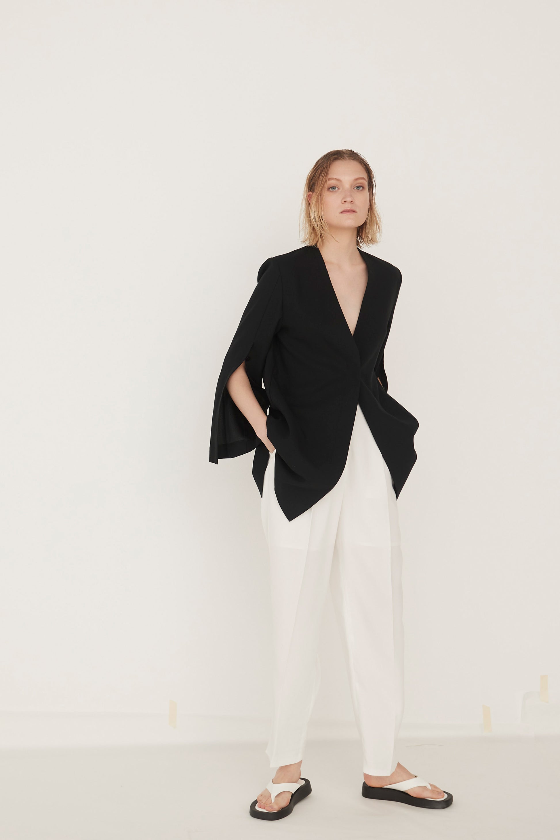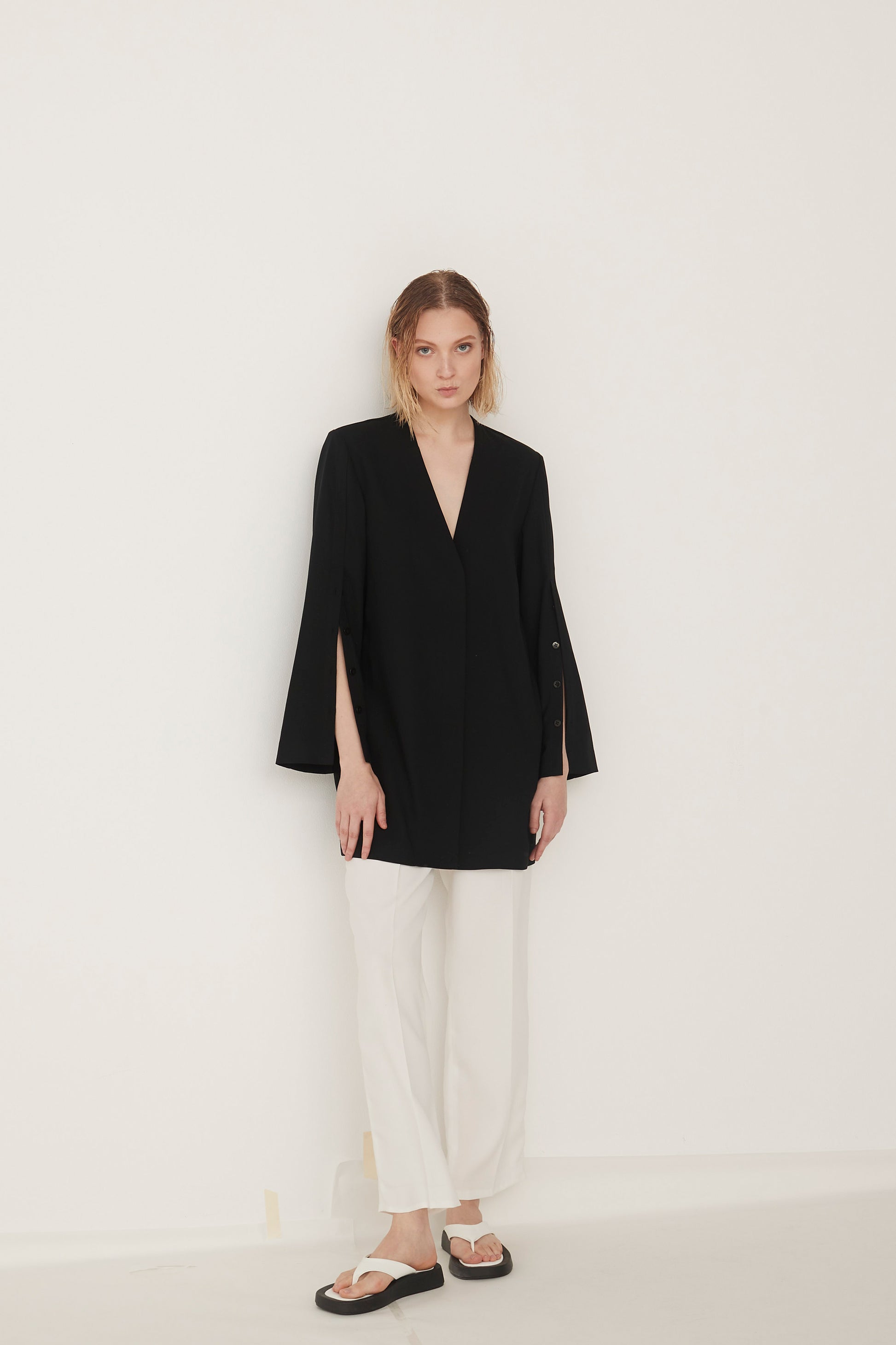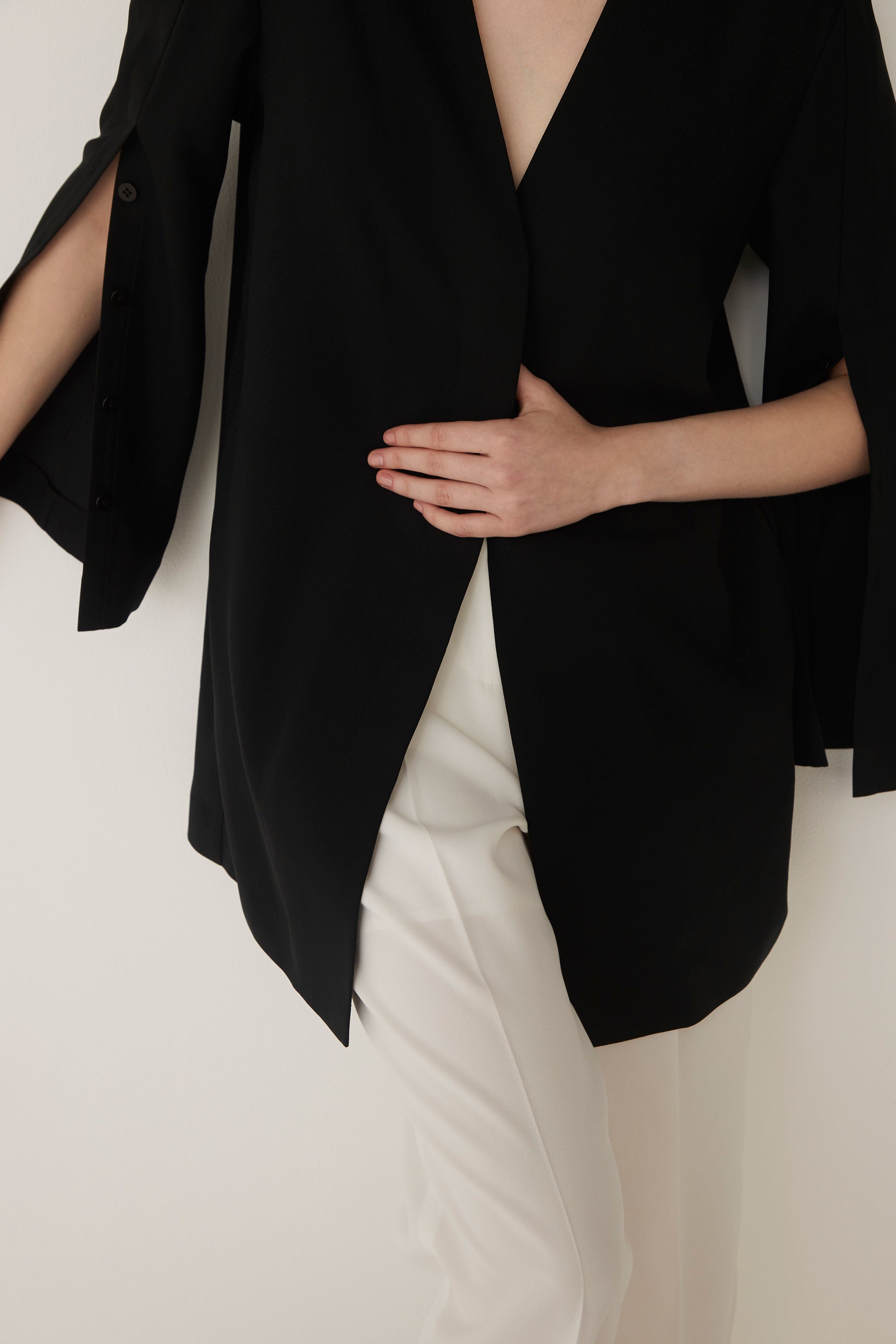 Slit Sleeves V-neck Jacket-BLACK